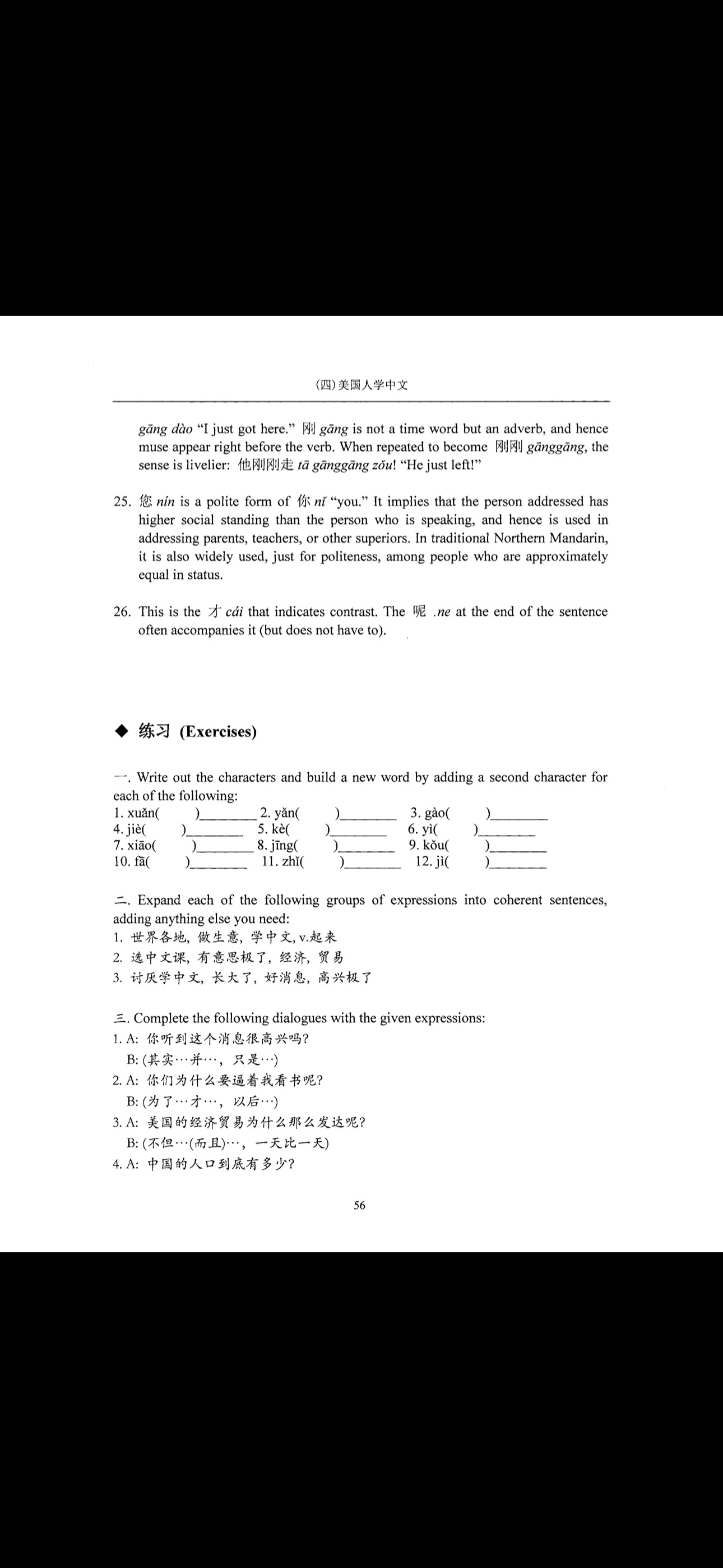 Dialogue, vocabulary, grammar notes, and exercises.
